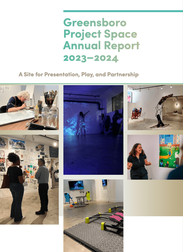 These reports share the stories and voices of those artists, students, faculty, community members, partner organizations, and the like, allowing you a unique window into the creative endeavors at Greensboro Project Space.